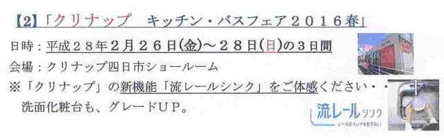 2016 クリナップフェア 2月26日(金)~ 2月28日(日)