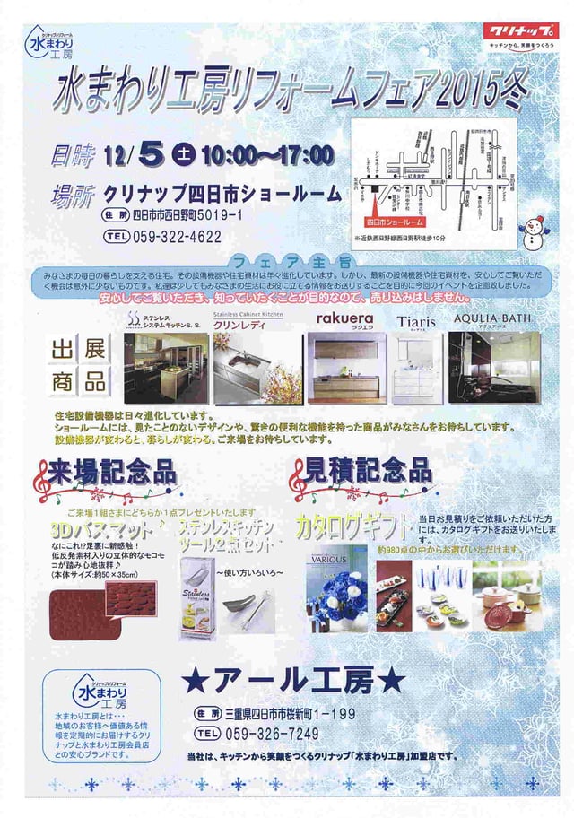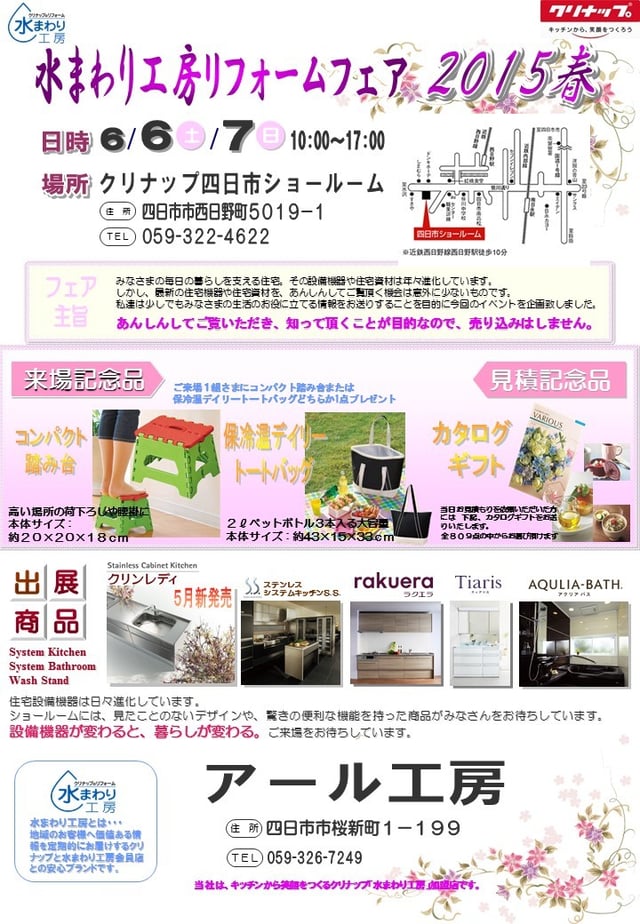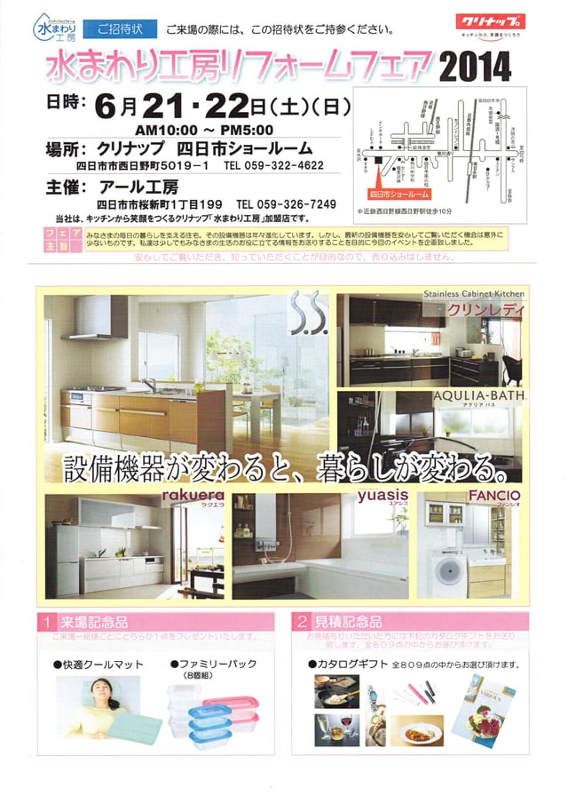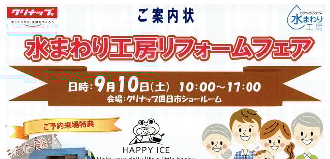 クリナップ 水まわり工房リフォームフェア 2022  9/10(日) クリナップ四日市にて