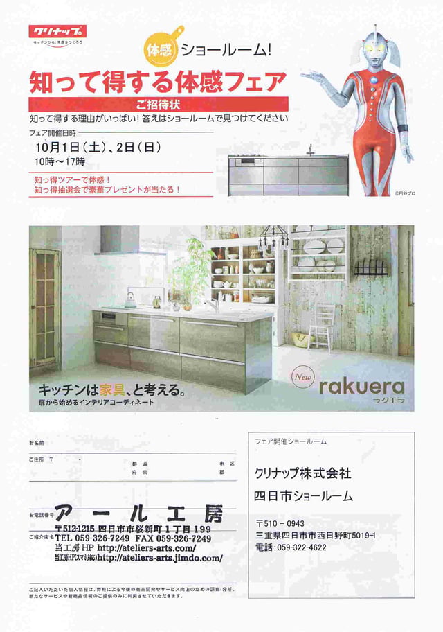 クリナップ&アール工房 コラボ企画 2023 3月27日まで クリナップ四日市にて