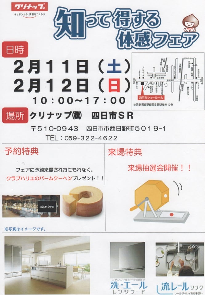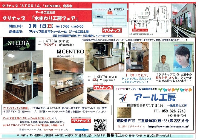 クリナップ 水まわり工房フェア 2020  3/1(日) クリナップ四日市にて