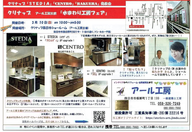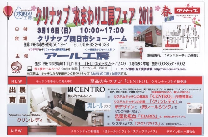 クリナップ 水まわり工房フェア 2019 3/10(日) クリナップ四日市にて