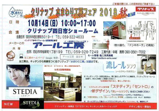 クリナップ 水まわり工房フェア 2018 10/14(日) クリナップ四日市にて