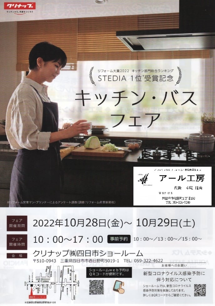 クリナップ キッチン・バスフェア 2022  10/28(金) 29(土)クリナップ四日市にて