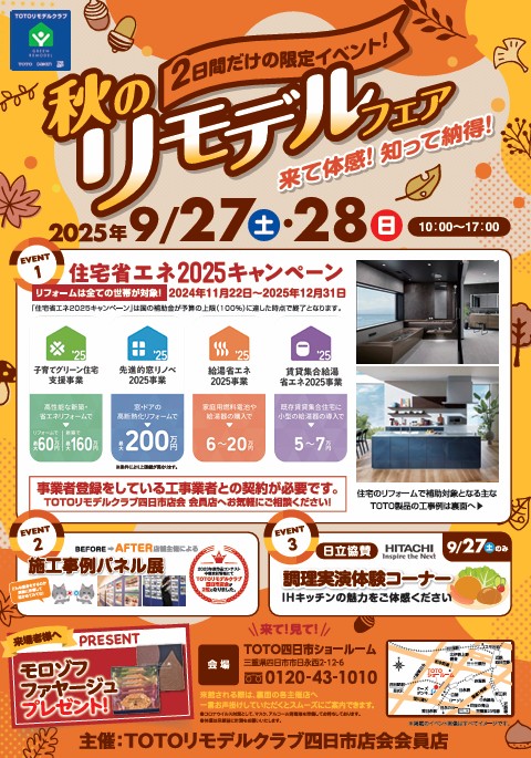 | TOTO秋のリモデルフェア2023 TOTO四日市ショールームにて 2日間 |